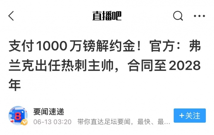 主帅:弗兰克→热刺(收入1000万镑)
