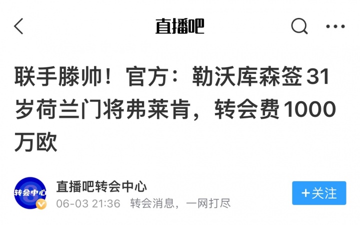 一门:弗莱肯→勒沃库森(收入1000万欧)